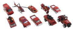 Set içerisinde 1 motor, 2 adet kamyonet, 1 minibüs, 1 helikopter, 1 deniz botu, 1 nerdivenli kamyon, 1 jeep, 1 otomobil ve 1 panzerli araç bulunmaktadır.