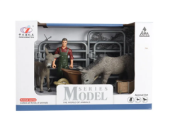 Set içerisinde keçi ve yavrusu, insan figürü, el arabası yem kovası ve 4 parça çit bulunmaktadır.